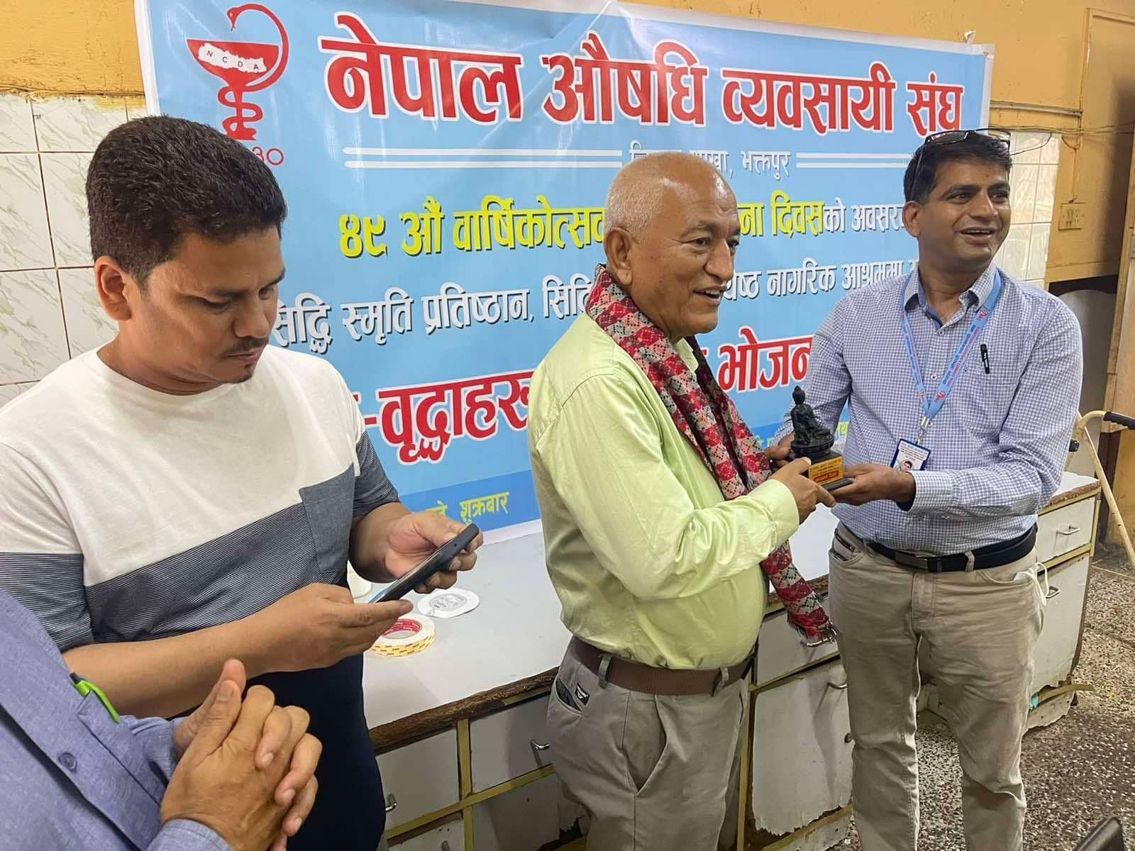 भक्तपुर । नेपाल औषधी व्यवसायी संघको ४९औ बार्षिकोत्सव तथा स्थापना दिवसको अवसर जेष्ठ नागरिकलाई दिवा भोज खुवाएको छ । सिद्दी स्मृति शालिग्राम जेष्ठ नागरिक आश्रममा आश्रीत वृद्ध वृद्दा हरुलाई संघले एक कार्यक्रम गरि दिवा भोजन गराएको हो । प्रतिष्ठान का संस्थापक अध्यक्ष श्याम भक्त धौभडेल तथा औसधि ब्यवसायी संघका पदाधिकारी तथा सल्लाहकारहरु बीच वर्तमान स्वस्थ्य नीति तथा औषधी व्यवसायी को समस्या तथा समाधानको बिषयमा छलफल भएको थियो ।