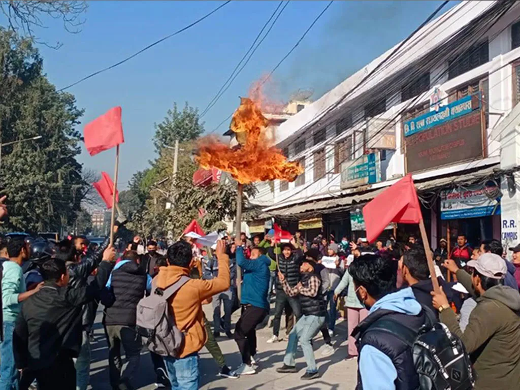 अनेरास्ववियूले जलायो शिक्षामन्त्रीको पुत्ला