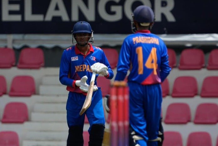 काठमाडौं : एसिसी पुरुष यु–१६ पूर्वी क्षेत्रीय क्रिकेट प्रतियोगितामा नेपालले सिङ्गापुरलाई पराजित गर्दै प्रतियोगितामा सुखद सुरुआत गरेको छ। मलेसियाको युकेएम ओभल क्रिकेट मैदानमा सम्पन्न खेलमा नेपालले सिङ्गापुरमाथि छ विकेटले जित निकालेको हो।जितका लागि एक सय ३९ रनको लक्ष्य पछ्याएको नेपालले ३३ दशमलव तीन ओभरमा चार विकेट गुमाएर पूरा ग¥यो। नेपालका लागि ओपनर प्रसिद्ध जैसीले सर्वाधिक ५५ रनको योगदान गरे। उनले ९७ बलमा पाँच चौकाको सहयोगमा ५५ रन जोडेका हुन्। रौनक श्रीवास्तवले ४० रन बनाए। सिङ्गापुरका लागि आकाश तेजाले तीन विकेट लिए भने युभान पाण्डेले एक विकेट झारेका हुन्।