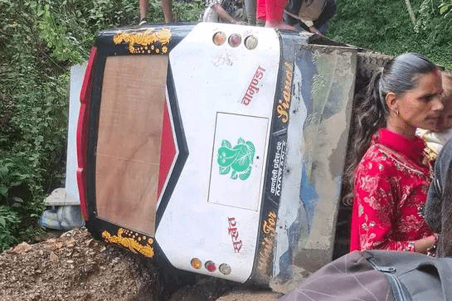 काठमाडौं । दैलेखको चामुण्डा बिन्द्रासैनी नगरपालिका-३ स्थित देउराली नजिकै मिनी बस दुर्घटना हुँदा ४ जना घाइते भएका छन् । घाइते हुनेमा चामुण्डा बिन्दासैनी नगरपालिका-२ की २७ वर्षीया मिना विष्ट, वडा नम्बर-१ बस्ने ४२ वर्षीय सुरेन्द्र शाही, वडा नम्बर २ की २४ वर्षीया निर्मला सुवेदी र वडा नम्बर ४ की ७० वर्षीया पुन्टी शाही रहेका छन् । बिन्द्रासैनी नगरपालिका-३ देउराली स्थित हाडाकोटको चाल्ने चौताराबाट सुर्खेत आउँदै गरेको क.प्र.०२००१ ख.०१७० नम्बरको मिनी बस अनियन्त्रित भएर सडकमा पल्टिएको प्रहरीले जनाएको छ । घाइतेहरूको उद्धार गरी उपचारका लागि दैलेखको दुल्लु अस्पताल तर्फ पठाइएको प्रहरीले जनाएको छ ।