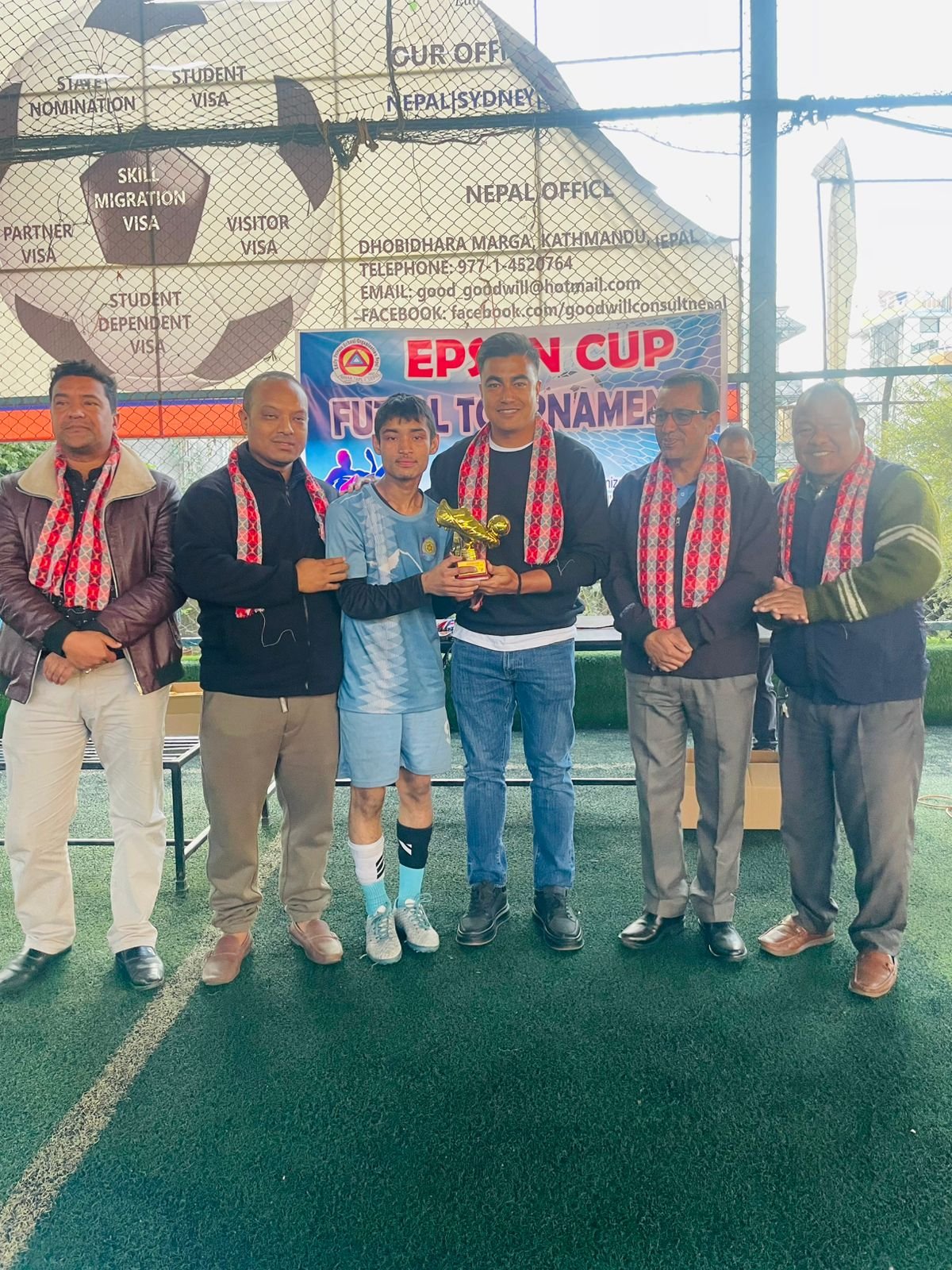 नेपाली राष्ट्रिय फुटबल टोलीका खेलाडी, त्रिभुवन आर्मी क्लबका कप्तान तथा साफ खेलकुदका गोल्ड मेडलिस्ट खेलाडी विकेश कुथुले विजेताहरुलाई पुरस्कृत गर्नु भएको थियो। संस्थाका अध्यक्ष जी.वी. खड्काको सभापतित्वमा सम्पन्न कार्यक्रममा उपाध्यक्ष विजय कर्माचार्यले स्वागत मन्तव्य राख्नु भएको थियो। कार्यक्रमको संचालन सचिव बिक्रम थापाले गर्नु भएको थियो। के.वी. ङाखुशीको संयोजकत्वमा सम्पन्न फुटसल प्रतियोगिता भव्यताका साथ सम्पन्न गरिएको थियो।