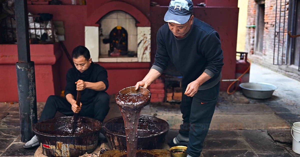 काठमाडौँ : माघे सङ्क्रान्ति नजिकिँदै गर्दा परम्परागत चाकु बनाउन व्यस्त छन्, ललितपुरका व्यवसायी। माघे सङ्क्रान्ति पर्व नजिकिँदै गर्दा काठमाडौं उपत्यकामा चाकुको माग यो वर्ष दोब्बरले बढेको उत्पादकहरूले बताएका छन्। ललितपुरस्थित पाटनमा परम्परागत चाकु उत्पादन गर्ने सुरेन्द्र जोशीका अनुसार पर्वको रौनकसँगै बजारमा माग तीव्र बनेपछि कारखानामा उत्पादन चाप बढेको छ। उखुको रसबाट उत्पादित सख्खर पकाएर घ्यू र नरिवल प्रयोग गरी बनाइने चाकु माघे सङ्क्रान्तिमासेवन गरिने परम्परागत परिकार हो।
