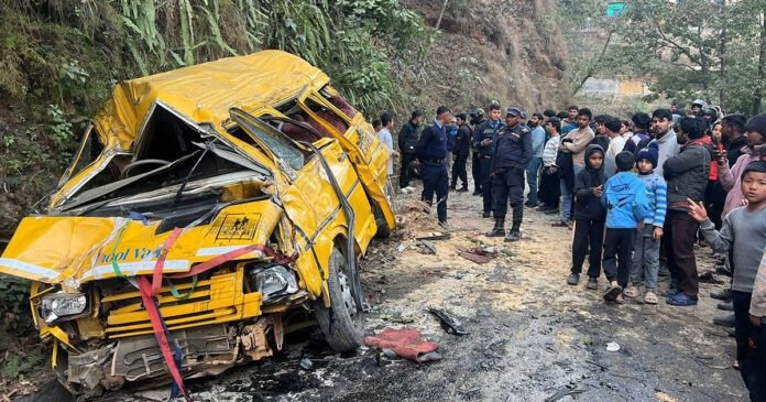 बागलुङ । बागलुङ बजारमा स्कूल बस दुर्घटना हुँदा २३ विद्यार्थी घाइते भएका छन्। बागलुङ नगरपालिका–१ रामरेखादेखि रातामाटातर्फ जाँदै गरेको ‘न्यू एभरेष्ट बोर्डिङ स्कूल’को ग ३ च ८६२१ नम्बरको बस आज दुर्घटना भएको हो। दुर्घटनाका घाइतेलाई उपचारका लागि धौलागिरि अस्पताल लगिएको सहायक प्रमुख जिल्ला अधिकारी नवराज बरालले जनाकारी दिए। घाइतेमध्ये तीन जनाको अवस्था गम्भीर छ। उक्त स्कूल बस मध्यपहाडी लोकमार्गबाट करिब ६० मिटर तल खसेको सहायक प्रजिअ बरालले बताए।