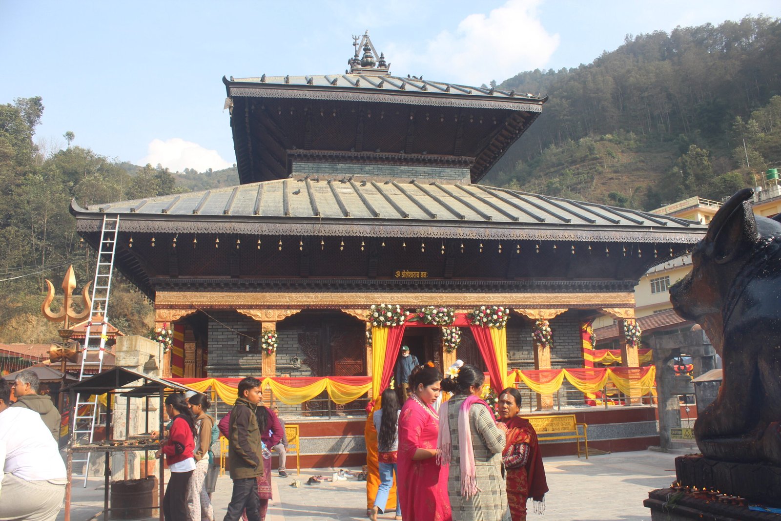 भक्तपुर । महाशिवरात्रि पर्वको अवसरमा भक्तपुरको डोलेश्वर महादेव मन्दिरमा दर्शनार्थीको घुइँचो लागेको छ। सूर्यविनायक नगरपालिका–८ सिपाडोलस्थित केदारनाथको शिर डोलेश्वर महादेव मन्दिरमा बिहानैबाट दर्शनार्थीको घुइँचो लागेको हो। मध्यराति मन्दिरमा विशेष पूजा गरेपछि दर्शनका लागि मन्दिरको चारैवटा ढोका खुला गरिएको छ । महाशिवरात्री पर्वको अवसरमा आउने साधुसन्तलाई वर्ग अनुसारको दक्षिणा दिइने केदारनाथको शिर डोलेश्वर महादेव संरक्षण तथा विकास समितिले जानकारी दिएको छ ।