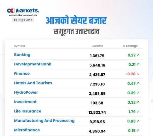 बुधबार बजारमा समूहगत उतारचढाव ।