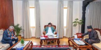 प्रधानमन्त्री ओलींसंग देउवा, प्रचण्डले भेट गर्दै