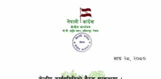 फागुन ३ गते कांग्रेसको केन्द्रीय समिति बैठक बस्ने