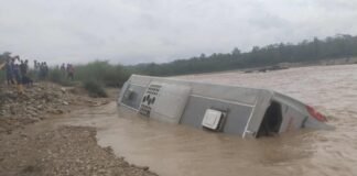 विनयी खोलामा आएको बाढीले यात्रुवाहक बस बगायो