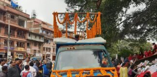बिजुक्छेँकी धर्मपत्नी शोभा प्रधानको आज अन्तिम संस्कार गरिदैं, शव यात्राको तस्विर...