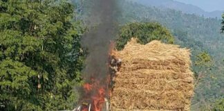 पराल बोकेको गाडीमा आगजनी