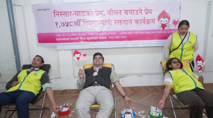 भक्तपुर । परमेश्वरको मण्डली विश्व सुसमाचार समाजले आज भक्तपुर परमेश्वरको मण्डलीमा ‘निस्तार-चाडको प्रेम, जीवन बचाउने प्रेम विश्वव्यापी रक्तदान कार्यक्रम’ आयोजना गरी छिमेकीहरूमाझ जीवन बाँड्ने कार्य सम्पन्न गरेको छ । रक्तदान कार्यक्रममा परमेश्वरको मण्डलीका विश्वासीहरू लगायत उनीहरूका परिवारहरू र छिमेकीहरू गरी करीब १५१ जना सहभागी रहेका थिए । “छिमेकीहरूको स्वस्थ दैनिक जीवन सुचारु होस् भन्ने आशा लिएर सहभागी भएको हुँ” भन्दै कार्यक्रममा सहभागी भएकाहरूले...