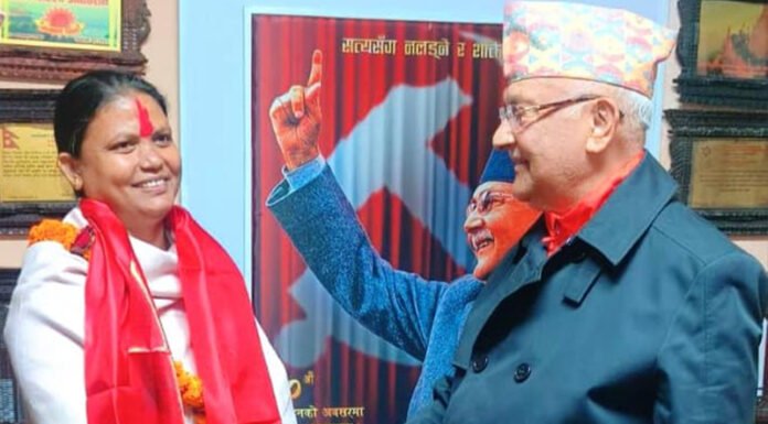 काठमाडौं : नेपाल कम्युनिष्ट पार्टी माओवादी केन्द्रकी केन्द्रीय सदस्य उमा विश्वकर्मा एमालेमा प्रवेश गरेकी छन्। पुर्व सांसदसमेत रहेकी विश्वकर्मा मंगलबार माओवादी पार्टी परित्याग गरी एमालेमा प्रवेश गरेकी हुन्। उनलाई अध्यक्ष केपी शर्मा ओलीले एमालेमा स्वागत गरे। उमा विश्वकर्मा नेकपा माओवादी केन्द्रबाट २०६३ सालमा सांसद भएकी थिइन्। एमाले प्रवेशसँगै माओवादी कपिलवस्तुलाई धक्का लागेको छ। उनी सहिद परिवारको सदस्य पनि...