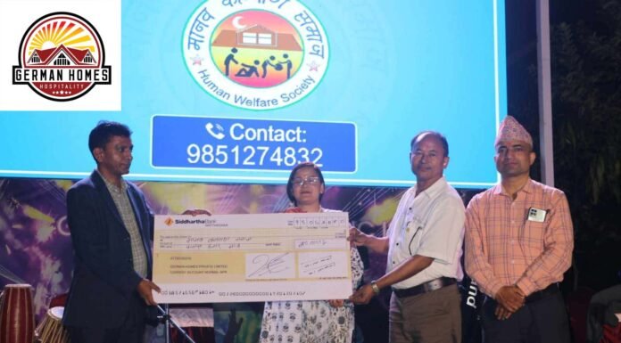 भक्तपुर । जर्मन होम्स हस्पिटालिटीले जर्मन होम्सको दोस्रो वार्षिकोत्सवको अवसरमा मानव कल्याण समाजलाई सहयोग गरेको छ । जर्मन होम्सको दोस्रो वार्षिकोत्सवको अवसरमा नारायणगोपाल स्मृति साँझ च्यारिटी शो आयोजना गरी मानव कल्याण समाजलाई सहयोग गरेको हो । जर्मन होम्स हस्पिटालिटीका सञ्चालक रामशरण तिमल्सिनाका अनुसार, कार्यक्रमका अवसरमा मानव कल्याण समाज झौखेललाई रु. ५० हजार सहयोग गरिएको हो । बेसहारा, असाहाय सडक...