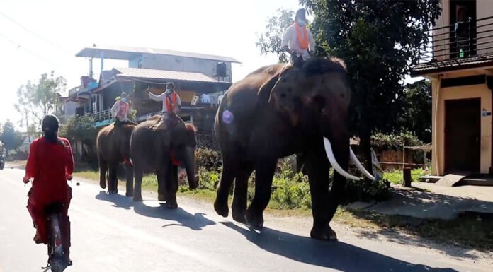 काठमाडौँ : नेपाल सरकारले कतारलाई उपहार दिन लागेका दुईवटा हात्तीको सौराहाबाट बिदाइ गरिएको छ। चितवनस्थित सौराहामा सोमवार एक कार्यक्रमको आयोजना गरी रूद्रकली र खगेन्द्रप्रसाद नाम गरेका दुई हात्तीलाई बिदाइ गरिएको हो। हात्तीहरुलाई वैदिक विधिअनुसार पूजा गरेर फूल माला लगाइ फलफूल खान दिएर बिदाइ गरिएको थियो।चितवनका प्रमुख जिल्ला अधिकारी गणेश अर्याल, चितवन राष्ट्रिय निकुञ्जका प्रमुख संरक्षण अधिकृत डा. गणेश पन्तलगायतले...