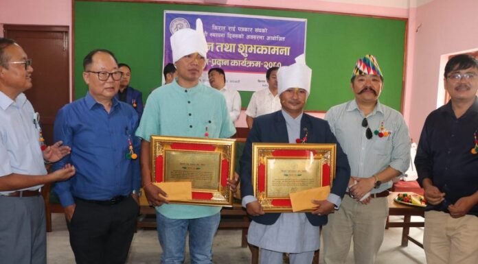 काठमाडौं : पत्रकार कुम्भराज राई र गजेन्द्र राई पुरस्कृत भएका छन्। आइतबार किराँत राई पत्रकार संघले संघको १६औँ स्थापना दिवसको अवसरमा उनीहरूलाई पुरस्कार प्रदान गरेको हो। किराँत राई यायोक्खा कार्यालयमा आयोजित कार्यक्रममा प्रमुख अतिथि एवं यायोक्खाका अध्यक्ष जीवन हाताचो राई,नेपाल आदिवासी जनजाति पत्रकार महासंघ(फोनिज)का अध्यक्ष गजुरधन राई लगायतले संयुक्त रूपमा नगद तथा प्रमाणपत्रसहित दुवै जनालाई सम्मान गरे। दुवै जनाको...