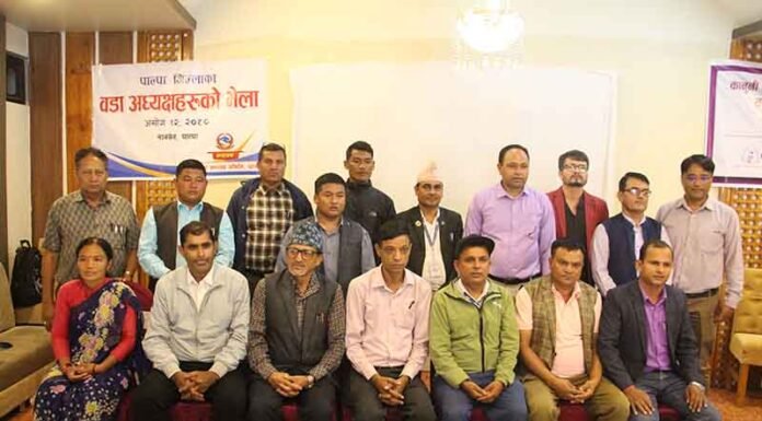पाल्पा : जिल्लामा वडा अध्यक्षहरू संगठित भएका छन्। वडालाई आर्थिक अधिकार दिन उनीहरूले माग गरेका छन्। शुक्रबार तानसेनमा भेला गरेर उनीहरूले नेपाल वडा संघ, पाल्पा गठन गरेका छन्। संघको अध्यक्षमा तानसेन नगरपालिका–९ का वडाध्यक्ष राजेशकुमार अर्याल सर्वसम्मत निर्वाचित भएका छन्। उपाध्यक्षमा दिवाकर देवकोटा र रामबहादुर रावल, सचिवमा थानेश्वर तिमिल्सेना, सहसचिवमा राजकुमार पन्थी र कोषाध्यक्ष इन्द्रा चिदी निर्वाचित भए। यस्तै...