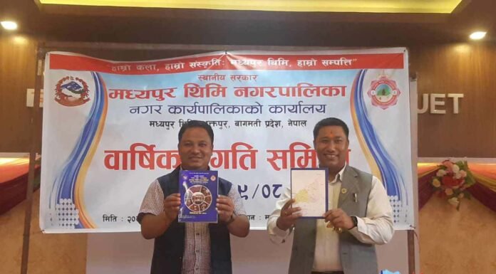 भक्तपुर । मध्यपुर थिमि नगरपालिकामा वार्षिक प्रगती समिक्षा सम्पन्न गरेको छ । विहिबार नगरपालिका अन्तरगत रहेका सबै शाखाको प्रगति प्रतिवेदन सार्वजनिक गरेको समिक्षा गरिएको नगरप्रमुख सुरेन्द्र श्रेष्ठले जानकारी दिनुभयो । आर्थिक वर्ष २०७९/०८० को वार्षिक नीति तथा कार्यक्रम, बजेट, कार्य योजना र सेवा प्रवाहको बारेमा वार्षिक प्रगतीको समिक्षा गरेको छ । नगरपालिकाले सोही अवसरमा नगरसभाबाट पारित आर्थिक वर्ष २०८०/०८१...