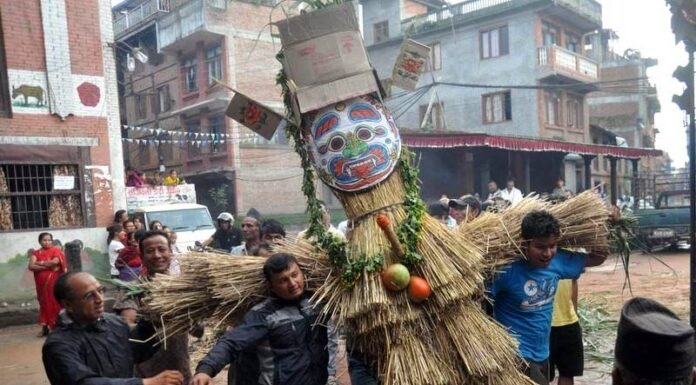 काठमाडौं : काठमाडौं उपत्यकालगायत देशका विभिन्न भागमा रहेका नेवार समुदायले आज गथामुगः चर्हे अर्थात् घण्टाकर्ण पर्व मनाउँदैछन् । यो समुदायमा प्रत्येक वर्ष श्रावण कृष्ण पक्षको चतुर्दशीका दिन यो पर्व मनाइन्छ। यो पर्वमा घण्टाकर्ण राक्षसको पुत्ला बनाई जलाउने र भूत, प्रेत र पिशाचलाई धपाउने विधि गरिन्छ। घरको मूल ढोका र मुख्य निदालमा पञ्चरंगी मयुरको प्वांख र तीनमुखे फलामको किला ठोक्ने...