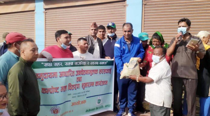भक्तपुर । भक्तपुरको दधिकोटमा जनचेतनामुलक सरसफाई तथा कम्पोष्ट मल वितरण कार्यक्रमको सम्पन्न भएको छ । सूर्यविनायक नगरपालिका वडा नं ४ हर्षचोकमा ओम सृजनशिल समाजको आयोजना तथा नेप्सेम्याक सेवा प्रालिको सहयोगमा सो कार्यक्रमको आयोजना गरिएको हो । ओम सृजनशिल समाजका अध्यक्ष अर्जुन केसीका अनुसार, समुदायमा आधारित जनचेतनामुलक सरसफाई कार्यक्रमको आयोजना गरिएको हो । आफ्नो टोल, बस्ती र समाज सफा राख्न...