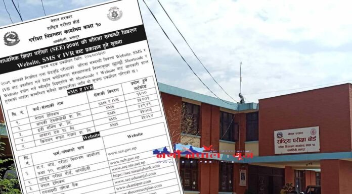 काठमाडौं । २०७९ सालको एसइई परिक्षाको परिक्षाफल प्रकाशित भएको छ ।