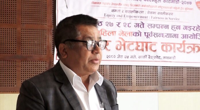 काठमाडौं : नेपाल निजामती कर्मचारी संगठनले राष्ट्रिय महिला भेला गर्ने भएको छ। नेपाल निजामती कर्मचारी संगठनले जेठ २७ र २८ गते काठमाडौंमा राष्ट्रिय महिला भेला आयोजना गर्दै छ। नेपाल निजामती कर्मचारी संगठन केन्द्रीय कार्यसमितिको आयोजना र केन्द्रीय महिला विभागको व्यवस्थापनमा ‘समता र सशक्तिकरण : सेवामा सबलीकरण’ भन्ने मूल नाराका साथ दोस्रो राष्ट्रिय भेला आयोजना गरिएको हो। संगठनका अध्यक्ष लेखनाथ...