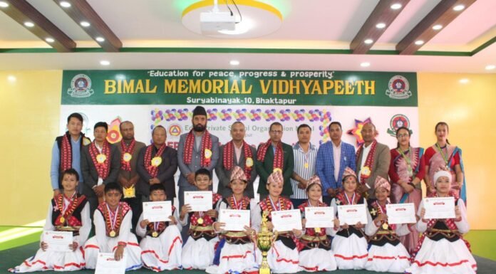 भक्तपुर । अन्तर विद्यालय लोक नृत्य तथा एकल नृत्य प्रतियोगिता-२०८२ सम्पन्न भएको छ। इडिफाइ प्राइभेट स्कूल अर्गनाइजेसन नेपाल(ईप्सन)को आयोजनामा सदस्य विद्यालय विमल मेमोरियल विद्यापीठमा उक्त कार्यक्रम समपन्न भएको हो । सो कार्यक्रममा ईप्सन अन्तर्गतको सदस्य विद्यालयहरूको सहभागिता रहेको थियो।विद्यालयको आफ्नै कार्यक्रम हलमा सम्पन्न सो नृत्य प्रतियोगिता सामूहिक र एकल गरी दुईवटा छुट्टाछुट्टै विधामा सञ्चालन गरिएको थियो । सामूहिक...