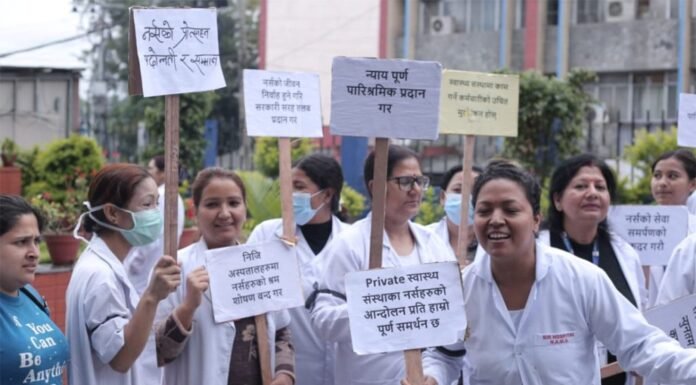 १४ कात्तिक, काठमाडौं। न्यूनतम तलब, भत्ता र सेवा–सुविधा सुनिश्चित गर्न माग राख्दै नर्सहरू आन्दोलित भएका छन्। देशभरका सबै अस्पतालका नर्सहरूले शुक्रबार विरोध प्रदर्शन गरेका छन्। सरकारीसरह सेवा सुविधा र पारिश्रमिकको माग गर्दै आन्दोलनमा उत्रिएका नर्सहरूलाई सरकारी अस्पतालका नर्सहरूले पनि एक्यबद्धता जनाउँदै आन्दोलनमा उत्रिएका हुन्।नसिंङ संघले अघि सारेको १५ बुँदे मागलाई पुरा गर्नुपर्ने भन्दै शुक्रबार देशभरका अस्पतालका नर्सहरूले प्रदर्शन गरेका...