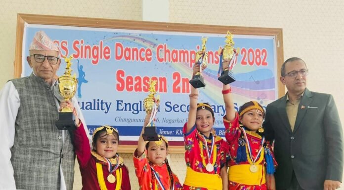 भक्तपुर । क्वालिटी अंग्रेजी माध्यमिक बिद्यालयले शैक्षिक बर्ष २०८१ बाट बालबालिकाहरुमा अन्तरनिहित प्रतिभा प्रष्फुटन गर्ने उद्देश्यले सुरुवात गरेको QESS Single Dance Championship को दोस्रो संस्करण Season II सम्पन्न गरेको छ। सिनियर समुह अन्तर्गत कक्षा ६ देखि कक्षा ९ सम्मका २० जना र जुनियर अन्तर्गत कक्षा १ देखि कक्षा ५ सम्मका २५ जना बिद्यार्थीहरु सहभागी भएका यस कार्यक्रममा दुवै समुहबाट...