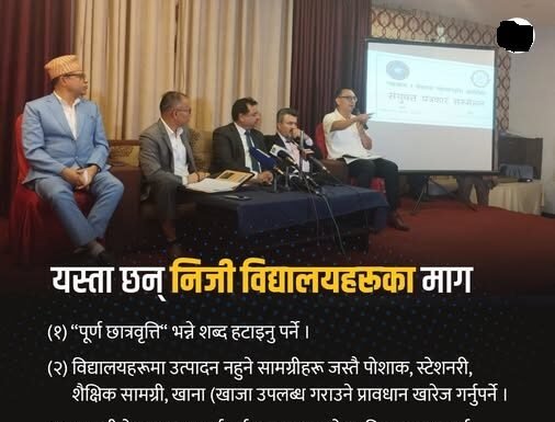 काठमाडौँ — विद्यालय शिक्षा विधेयकका केही प्रावधानहरूप्रति असहमति जनाउँदै निजी विद्यालय सञ्चालकका चार वटा संस्थाले काठमाडौँको माइतीघरमा विरोध प्रदर्शन गरेका छन्। निजी विद्यालयहरू क्रमशः गैरनाफामूलक बनाइने र विद्यार्थीलाई पूर्ण छात्रवृत्ति दिनुपर्ने व्यवस्थामा सञ्चालकहरूले विमति जनाउँदै आएका छन् ।प्याब्सन, नेसनल प्याब्सन, हिसान र अपेनले संयुक्त विज्ञप्ति जारी गर्दै विधेयकबाट उक्त दुई व्यवस्था हटाउन माग राख्दै बिहीबारदेखि प्रदर्शन थालेका हुन्। प्रतिनिधिसभाको शिक्षा,...