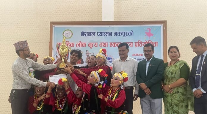 भक्तपुर । नेशनल प्याव्सन भक्तपुरको सामुहिक लोक नृत्य प्रतियोगिता तथा एकल नृत्य प्रतियोगिता आज मिति २०८२ भाद्र ६ गते क्वालिटी अंग्रेजी माध्यमिक विद्यालयको आयोजनामा भत्केपाटी स्थित ख्वप बैङ्क्वेटमा सम्पन्न भएको छ।सदस्य विद्यालयका बिद्यार्थीहरु सम्मिलित उक्त प्रतियोगितामा सामुहिक लोक नृत्यमा १८ वटा विद्यालयले सहभागिता जनाएका थिए। जसमा प्रसादी पाठशालाले प्रथम स्थान प्राप्त गरेको थियो भने युनिटी ईङ्ग्लिस स्कुलले द्वितिय, रिताम्भरा...