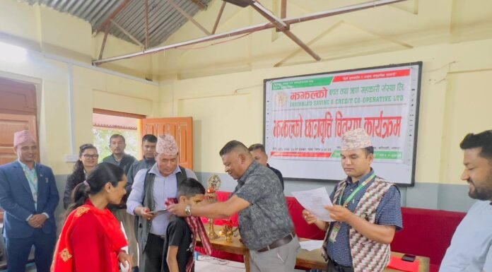 भक्तपुर । झझल्को बचत तथा ऋण सहकारीले विभिन्न परिक्षा उत्कृष्ट अंक ल्याएका कम आय भएका विद्यार्थीहरुलाई छात्रवृत्ति प्रदान गरेको छ । चाँगुनारायण नगरपालिकाका नगरप्रमुख जीवन खत्रीको प्रमुख आतिथ्यतामा उक्त कार्यक्रम सम्पन्न भएको साकोसका सचिब सुरज बास्तोलाले जानकारी दिएका छन् ।