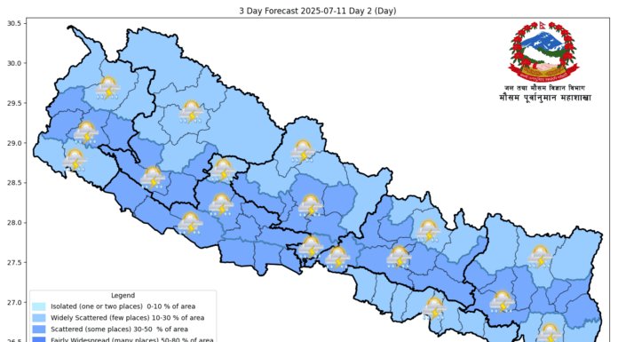काठमाडौं । जल तथा मौसम विज्ञान विभाग, मौसम पूर्वानुमान महाशाखा, मौसम पूर्वानुमान बुलेटिन अनुसार मौसम पूर्वानुमान यस्तो रहेको छ।